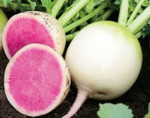 白い皮の下は綺麗な赤色の、キメのしっかりした大根です。そのまま生で、特製生姜味噌󠄀をつけてどうぞ。¥200