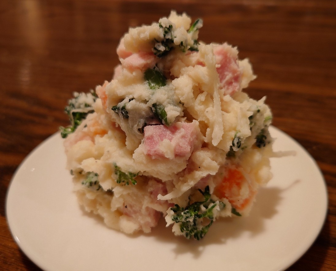 ニシユタカベースの、野菜をたくさん入れた美味しいポテトサラダです。¥400