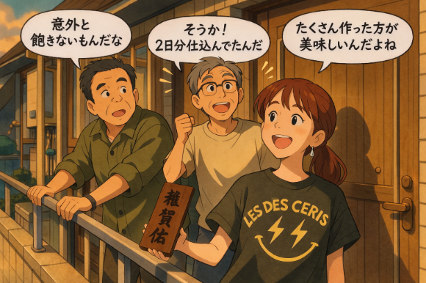 人参、こんにゃく、しめじ、ごぼう、粗びきミンチを入れています。美味しく仕上がりました。¥300